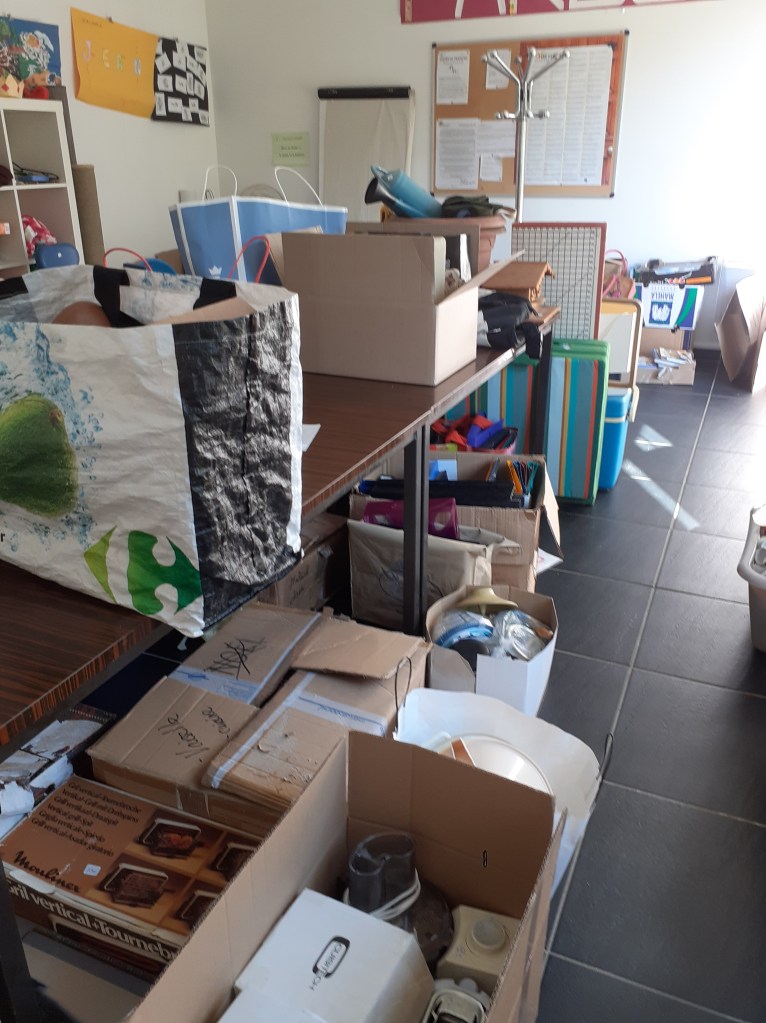 Notre première friperie a eu lieu le samedi 7 juin. La veille plusieurs bénévoles, membres du CA, étudiants parrainés ou membres de la paroisse, se sont relayés pour trier 900 kg de vêtements et les ranger sur les tables disposées dans la salle Tibériade.