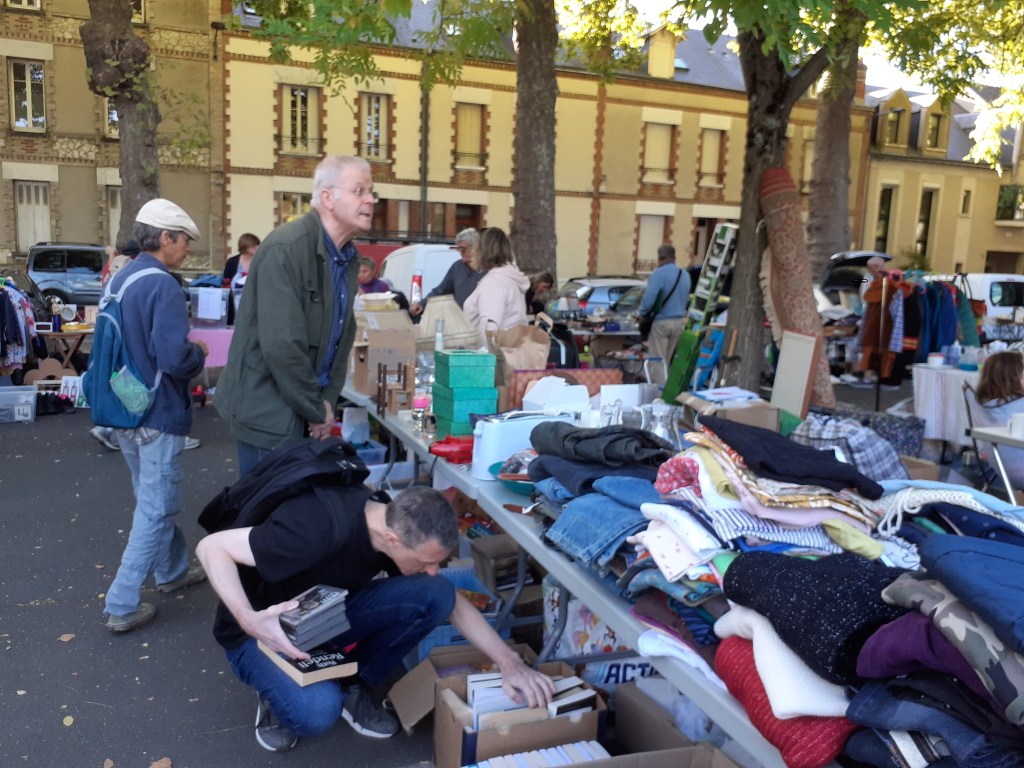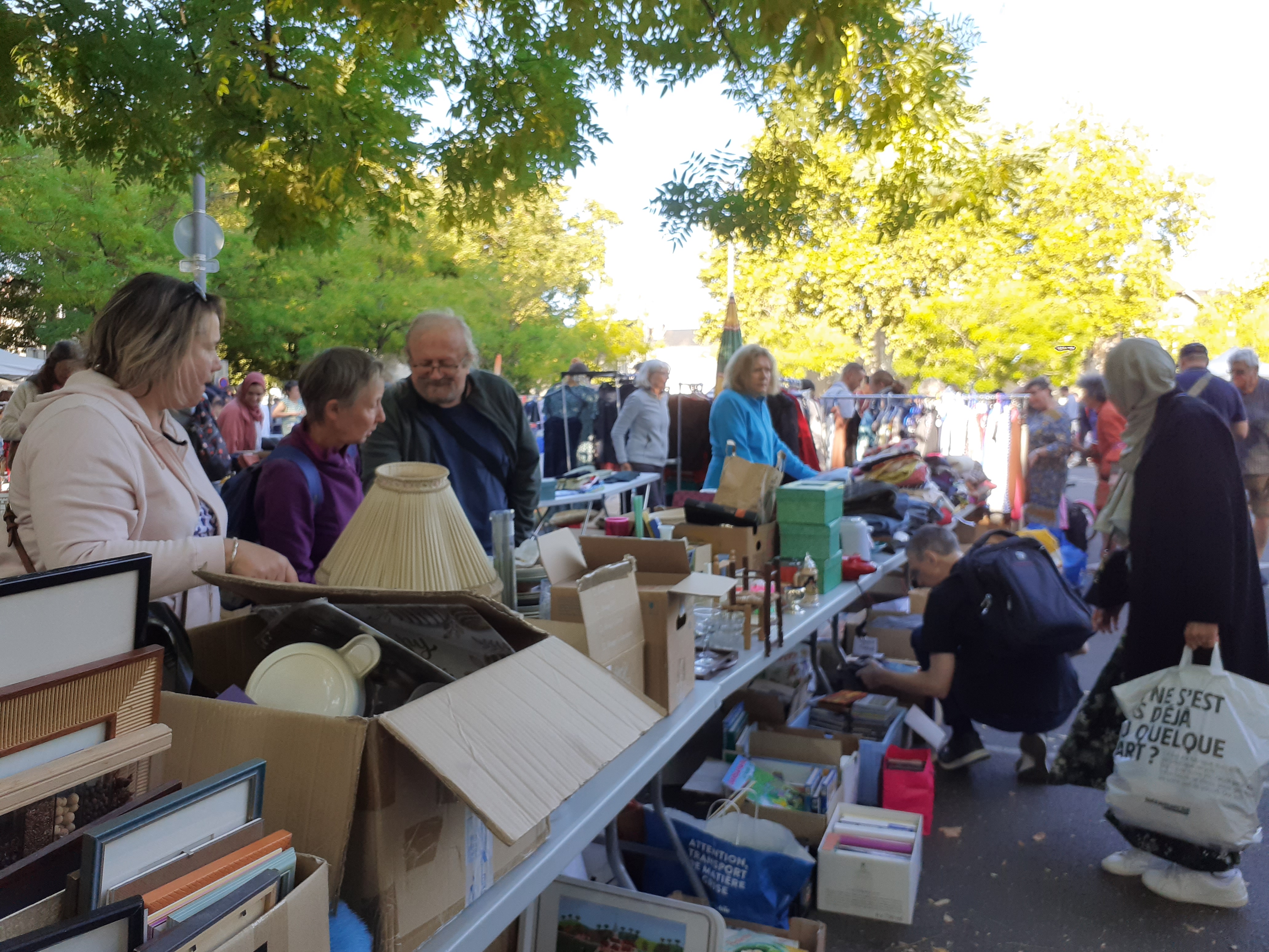 Dimanche 24 août 2025, le ciel était tout bleu et les chalands nombreux place de Strasbourg. Nous avons fait une belle recette grâce à tous ceux qui nous ont confié divers objets et vêtements à vendre. Mais si la brocante est le point culminant de cette activité, elle n’est que l’aboutissement d’actions plus discrètes et néanmoins indispensables pour sa préparation et son bon achèvement.