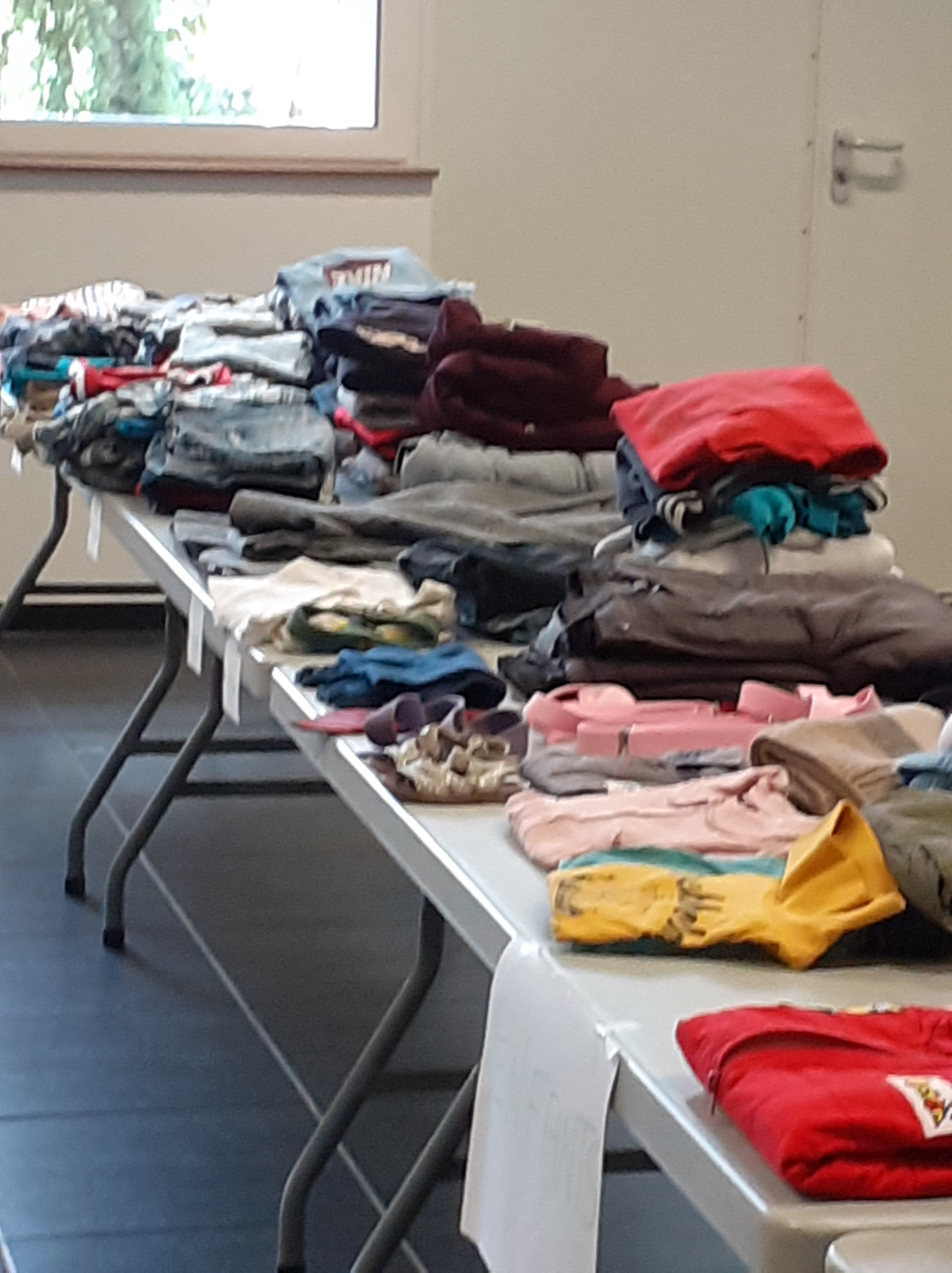Nous avons manqué de linge de maison (draps et serviettes de toilettes) et de chaussures pour satisfaire tout le monde ! N’hésitez pas à en déposer dans les paniers de l’entraide, au centre paroissial ou au temple !