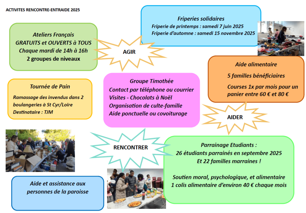 Rencontre Entraide mène également des actions solidaires avec plusieurs associations tourangelles au service des plus démunis et des migrants.